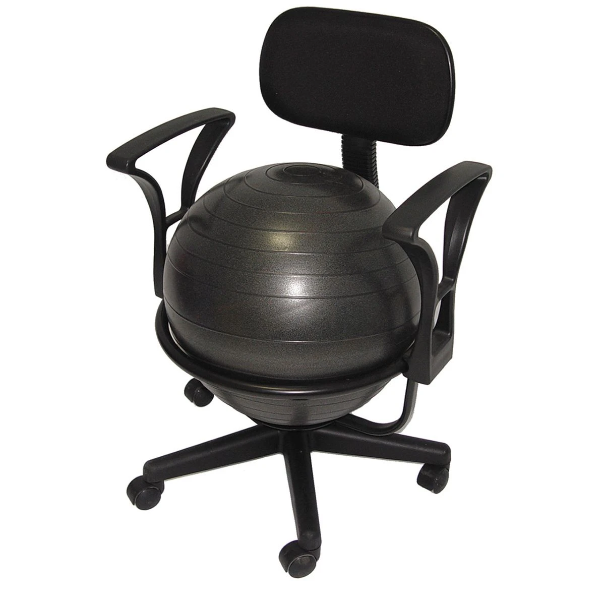 Ergonomic seating combines the benefit of an exercise fitness ball with a rolling base. Great alternative to a traditional chair for both office use and leisure. Promotes active sitting while strengthening the back and improves posture. Aproximate height from the top of the ball to the floor is between 21″ to 22″. Compact, lightweight, and easy to transport.