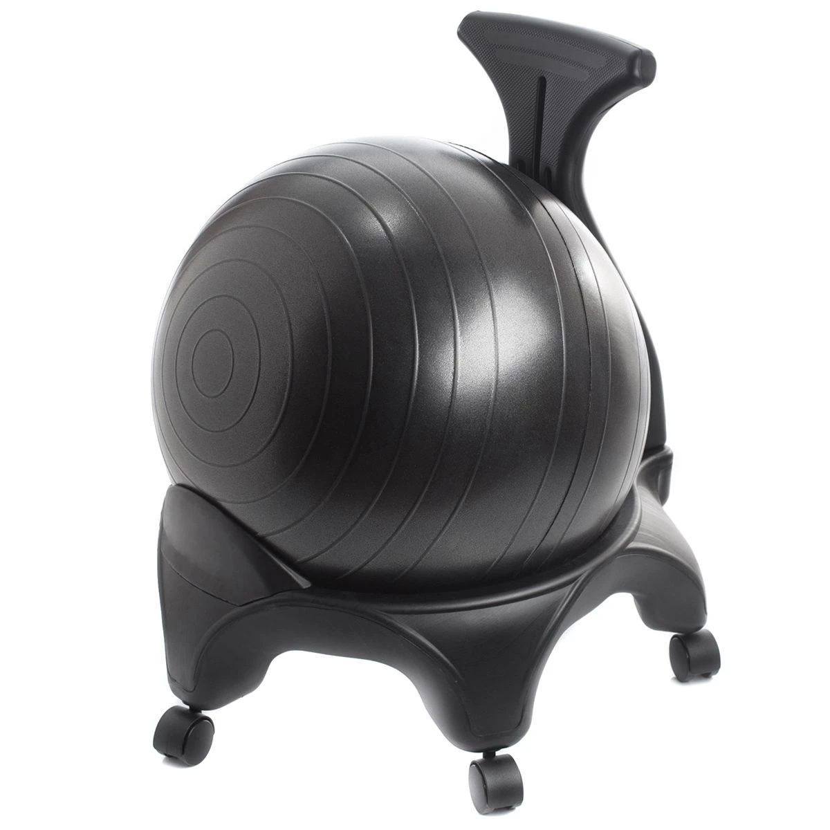 Five-legged Ergonomic seating structure that combines the benefit of an exercise fitness ball with a rolling base. Promotes active sitting while strengthening the back and improves posture. Compact, lightweight, and easy to transport.