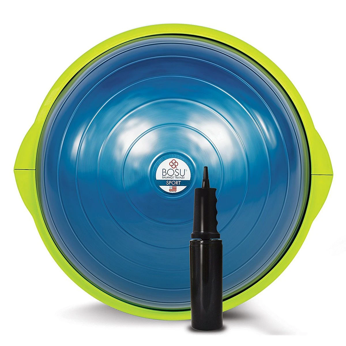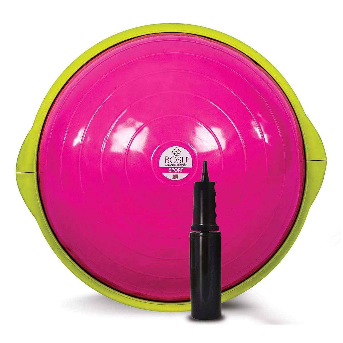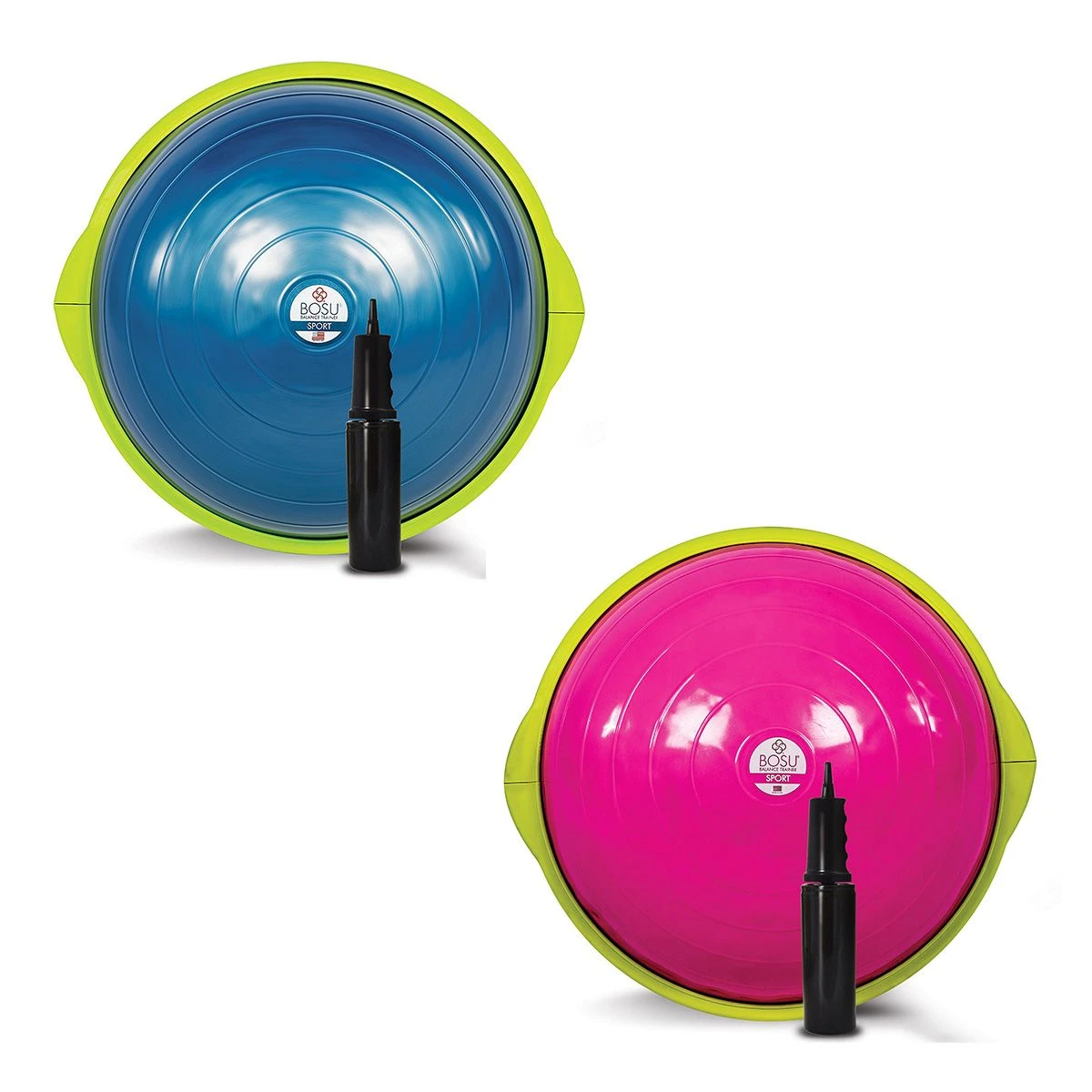 This new sleek ,smaller size, 50 cm (19.5 ” ) is a compact design of the BOSU balance trainer is a perfect complement to the trainer on the go as well as space challenged club or home user. Strengthens your core and adds fun to your routines. Easy to transport and store. Available in two colors: blue or pink, each with neon green base. Includes owners manual and foot pump. Made in the USA.