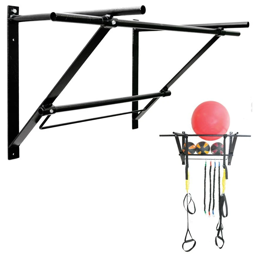 Our Wall Mounted Chin Up Station is durable, sturdy and versitle. Use it as a standard chin up bar station or as an anchor point for different gym systems. The Chin up Station also doubles as a storage shelf for fitness balls and other gym equipment.