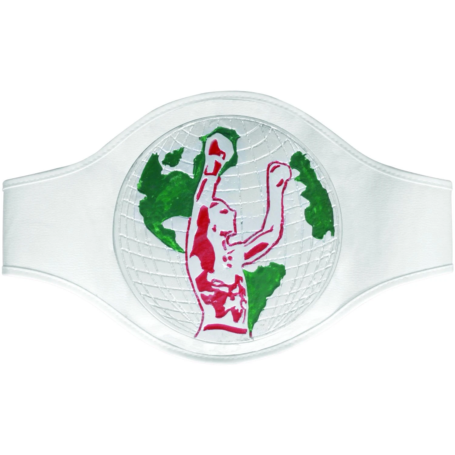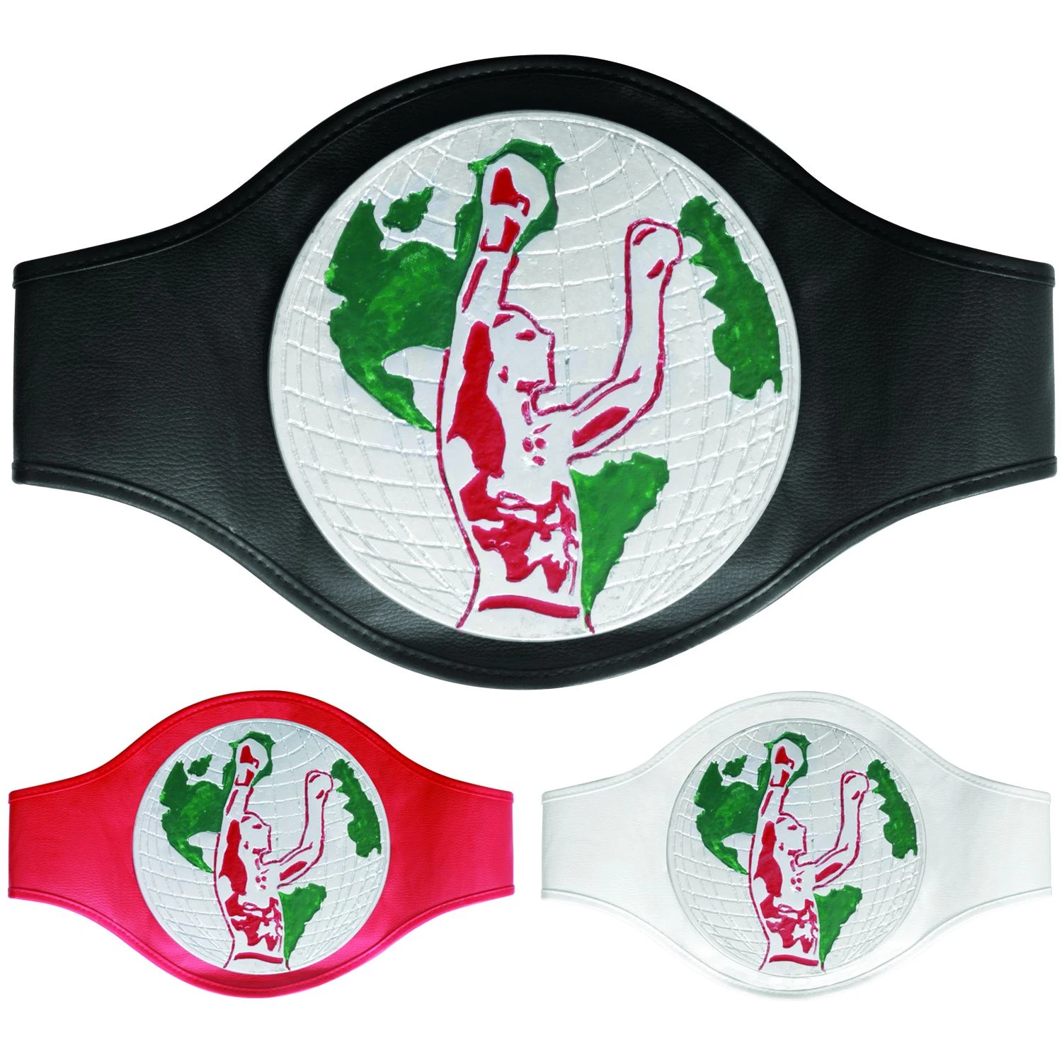 The boisterous resin, center plate exudes an air of victory and the durable synthetic leather belt includes an adjustable buckle-style closure.