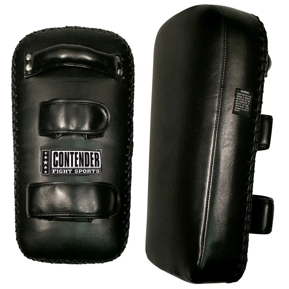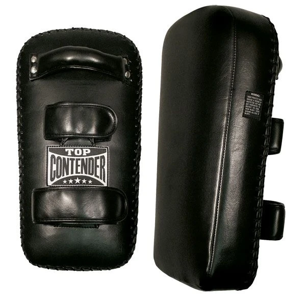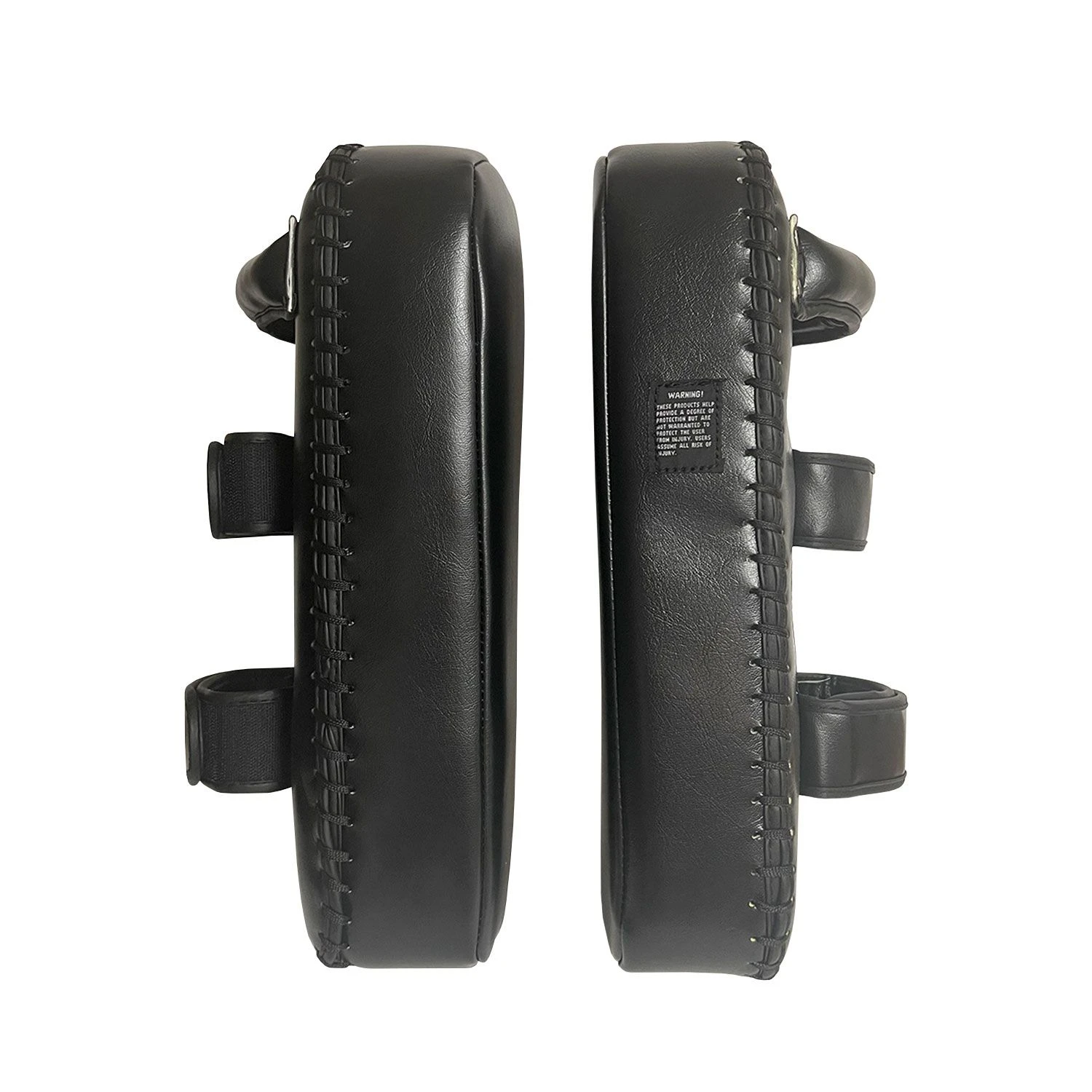 An affordable alternative, these synthetic leather thai pads offer 2 hook & loop wrist/arm straps and a riveted handle.