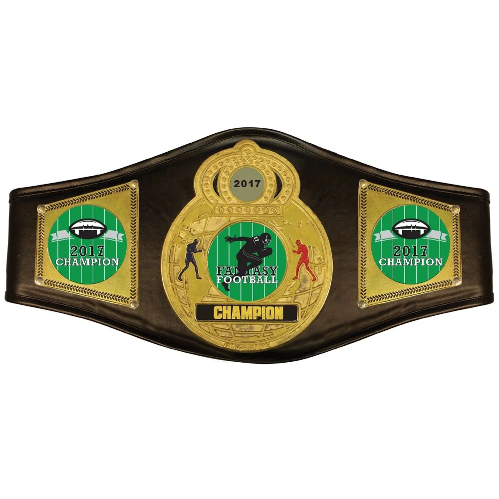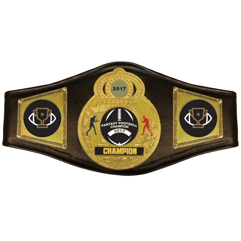 Instantly become a world champion with Ringside’s Deluxe Mini Championship Belt. At 38” long, it’s perfect for your Fantasy Football League Champion. It’s made of synthetic wool backing with a buckle style closure and three colorful plates. Be the envy of your friends or coworkers with this large style Fantasy Football League Championship Belt.