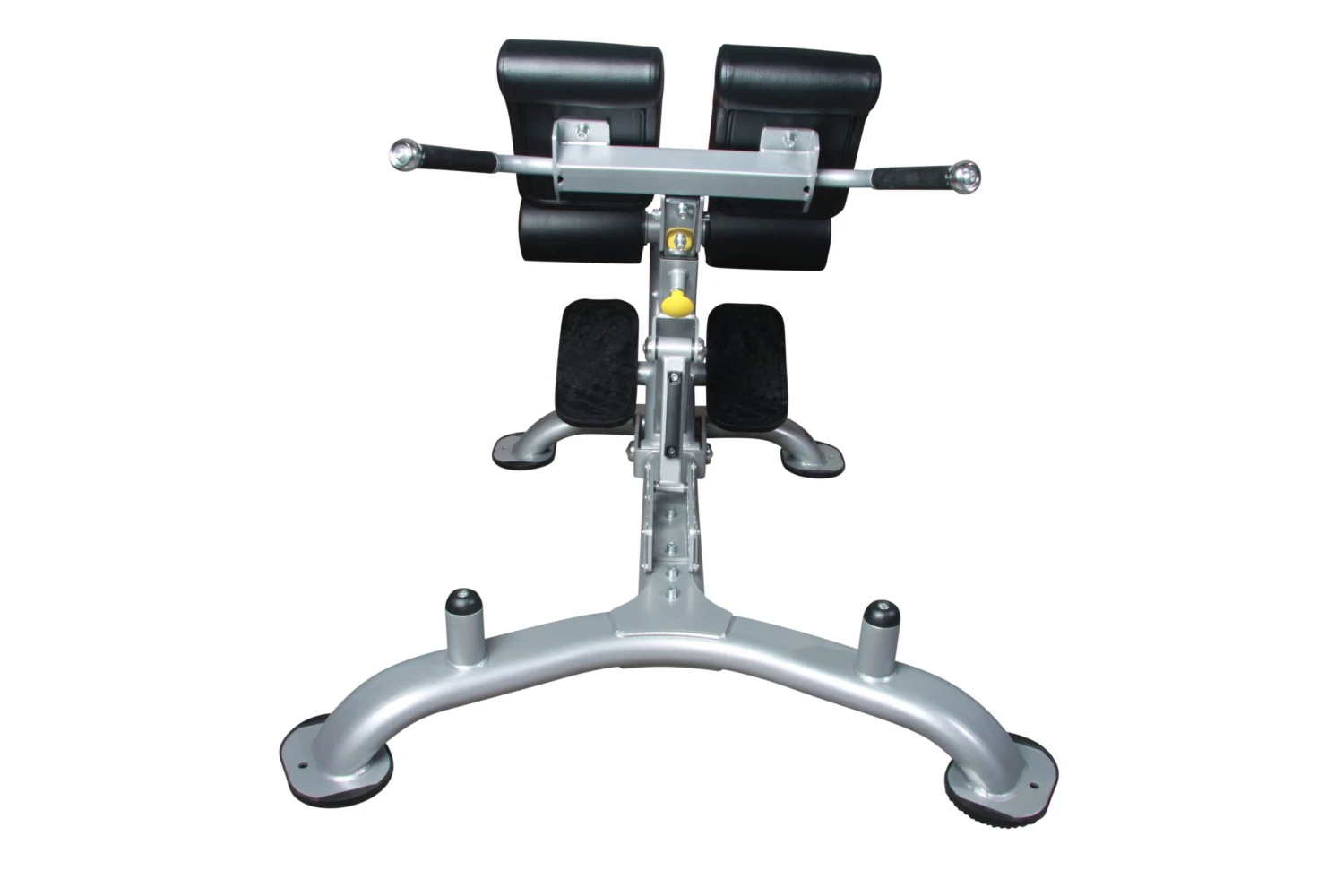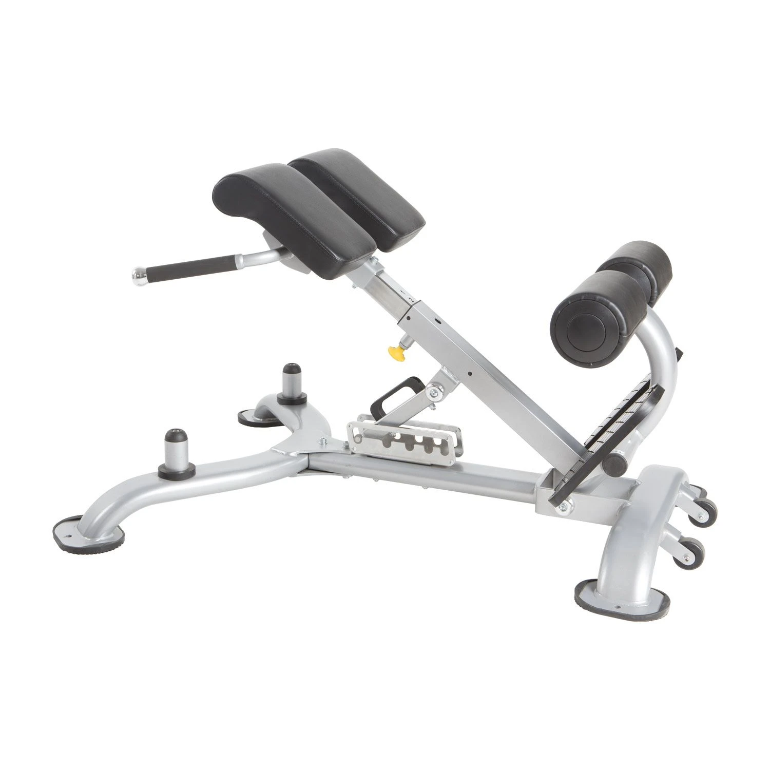 The Fitness First Hyper Extension is fully adjustable with 5 different angles and comes with a wider profile for increased stability. Features TWO weight horns at the base. The convenient handles allow for easy on and off and the rear transport wheels allow for easy mobility.