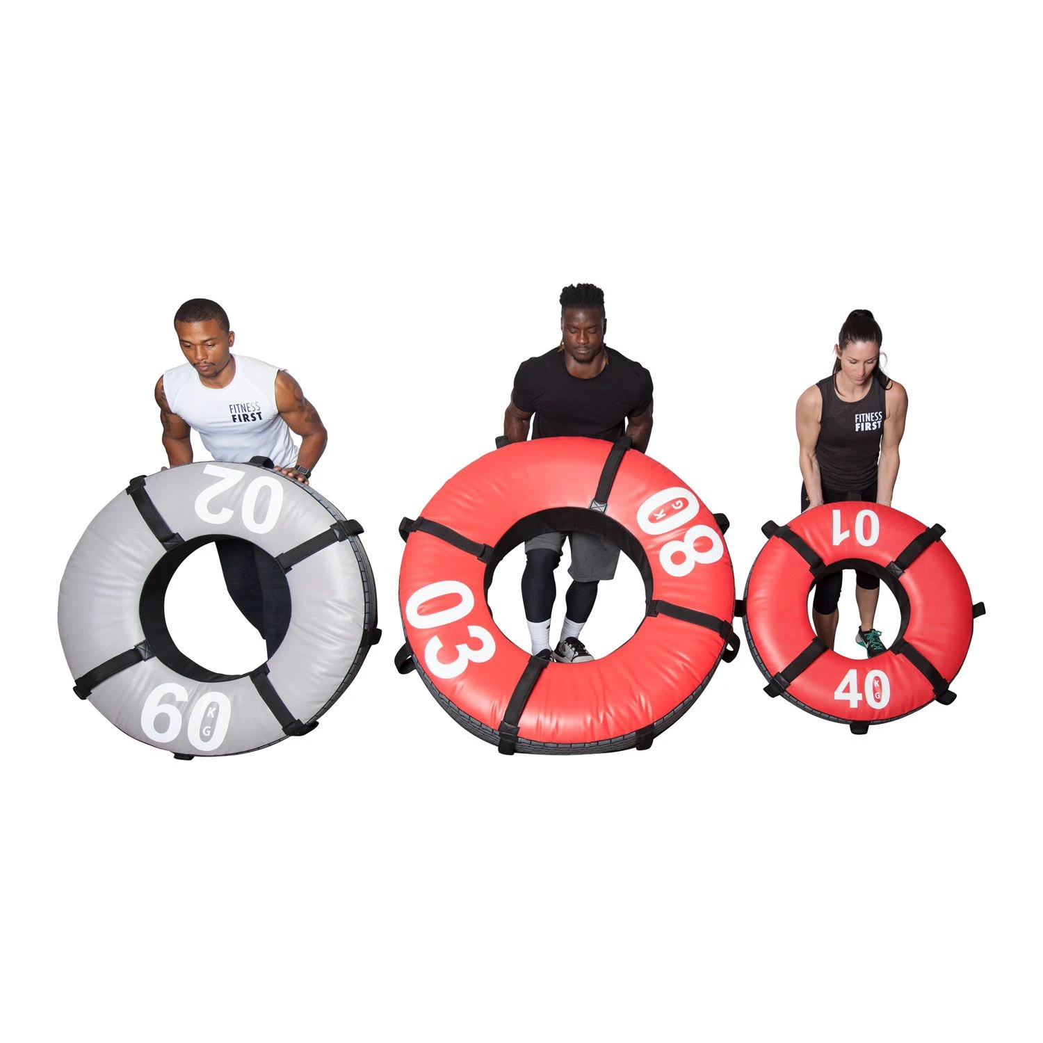 Want to join the fun in tire flipping? Well here is your chance with tires that won’t hurt your floors. Fitness 1st new Gym Training Tire comes in three different sizes including 88lbs (40kg), 132lbs (60kg) and 176lbs (80kg). Tires are PVC covered to not do any damage or leave marks inside on your floors. Perfect for CrossFit facilities or just to build strength at home or gym. Use them as plyo jumps, tire flips, back and forth flips and more.