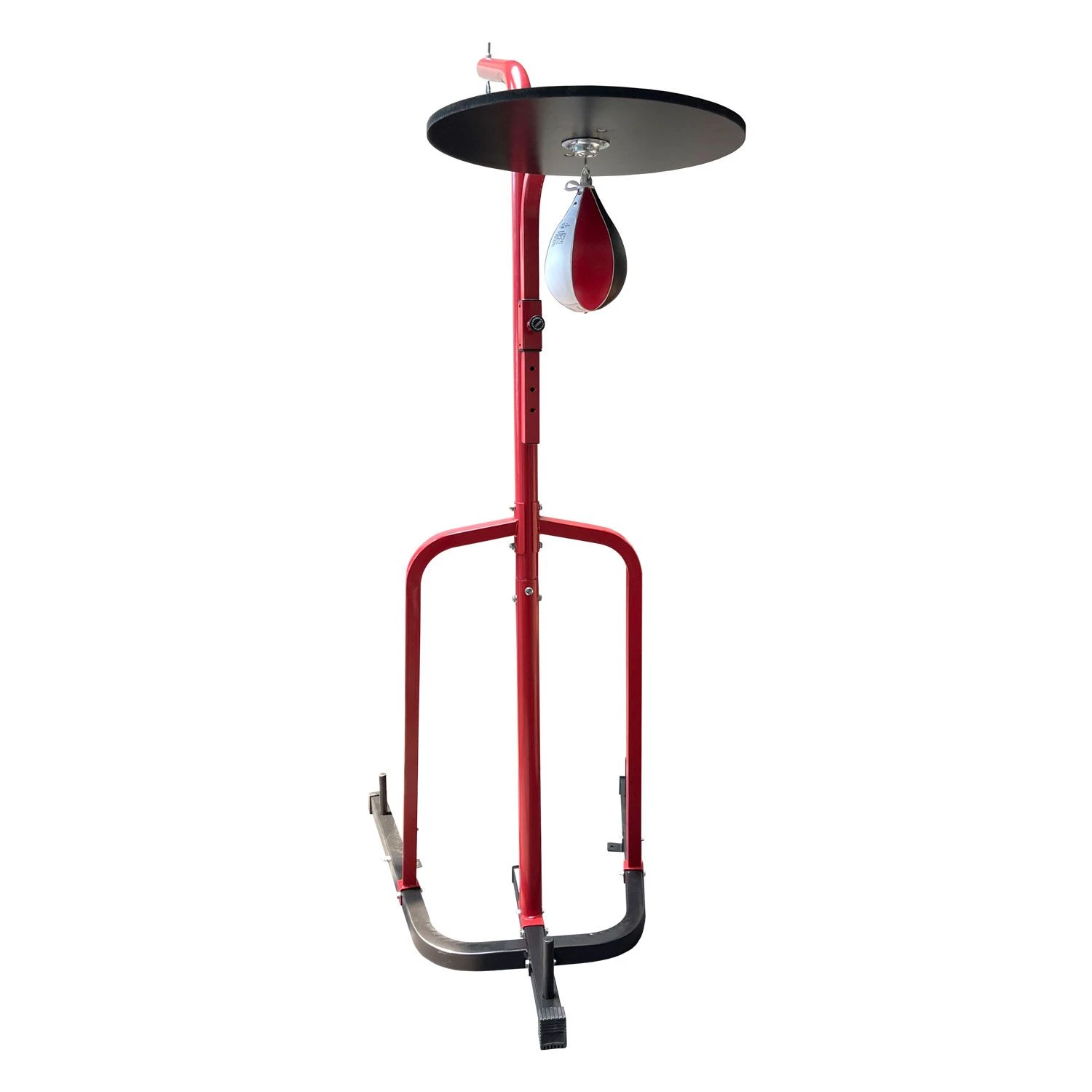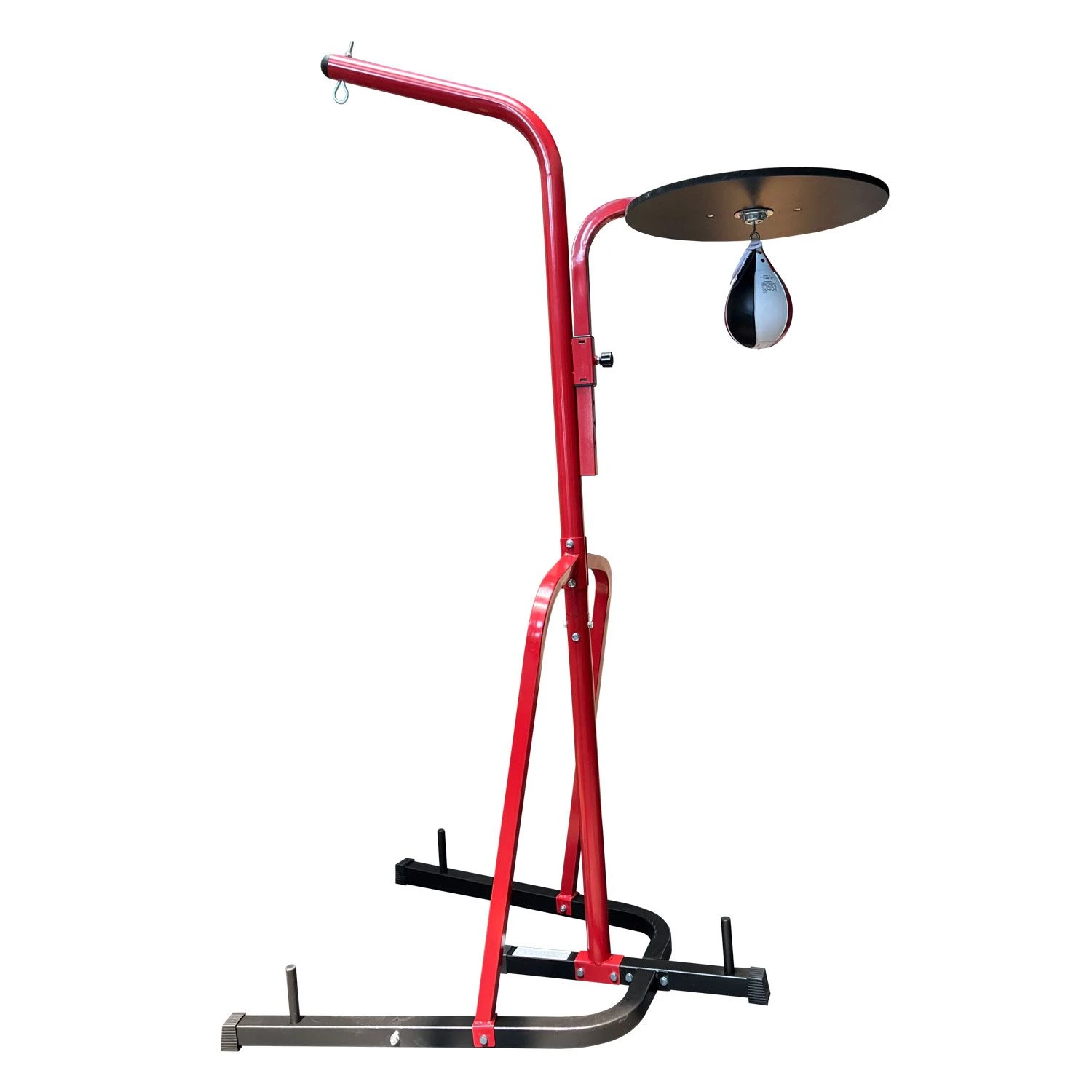 The Ringside Heavy Bag Stand w/ Speed Bag Platform is constructed of heavy-duty, powder-coated, tube steel. Includes a speed bag platform and Pro Style Swivel. Comes complete with steel I-bolt on top for hanging a heavy bag and 3 bottom weight plate posts for adding weights for additional stability. Manufactured to hold heavy bags up to 70 lbs. Speed bag platform height is adjustable to accommodate different size athletes. An ideal home workout training stand.