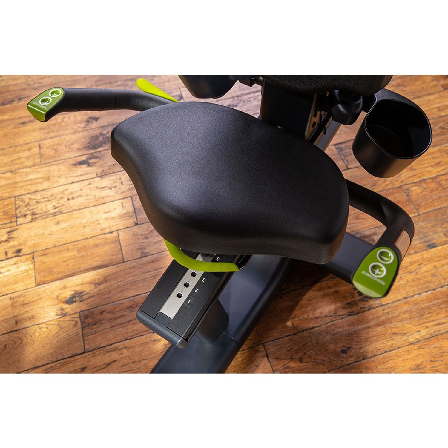 SportsArt’s ECO-NATURAL™ Elite line is the embodiment of design, technology, sustainability, and cardiovascular excellence. The sleek angles and practical features combine with a self-powered design to provide users with an engaging workout. The C574R Recumbent Cycle features an easy step-through design for ease-of-access, adjustable seat and seat back, and fingertip resistance controls.