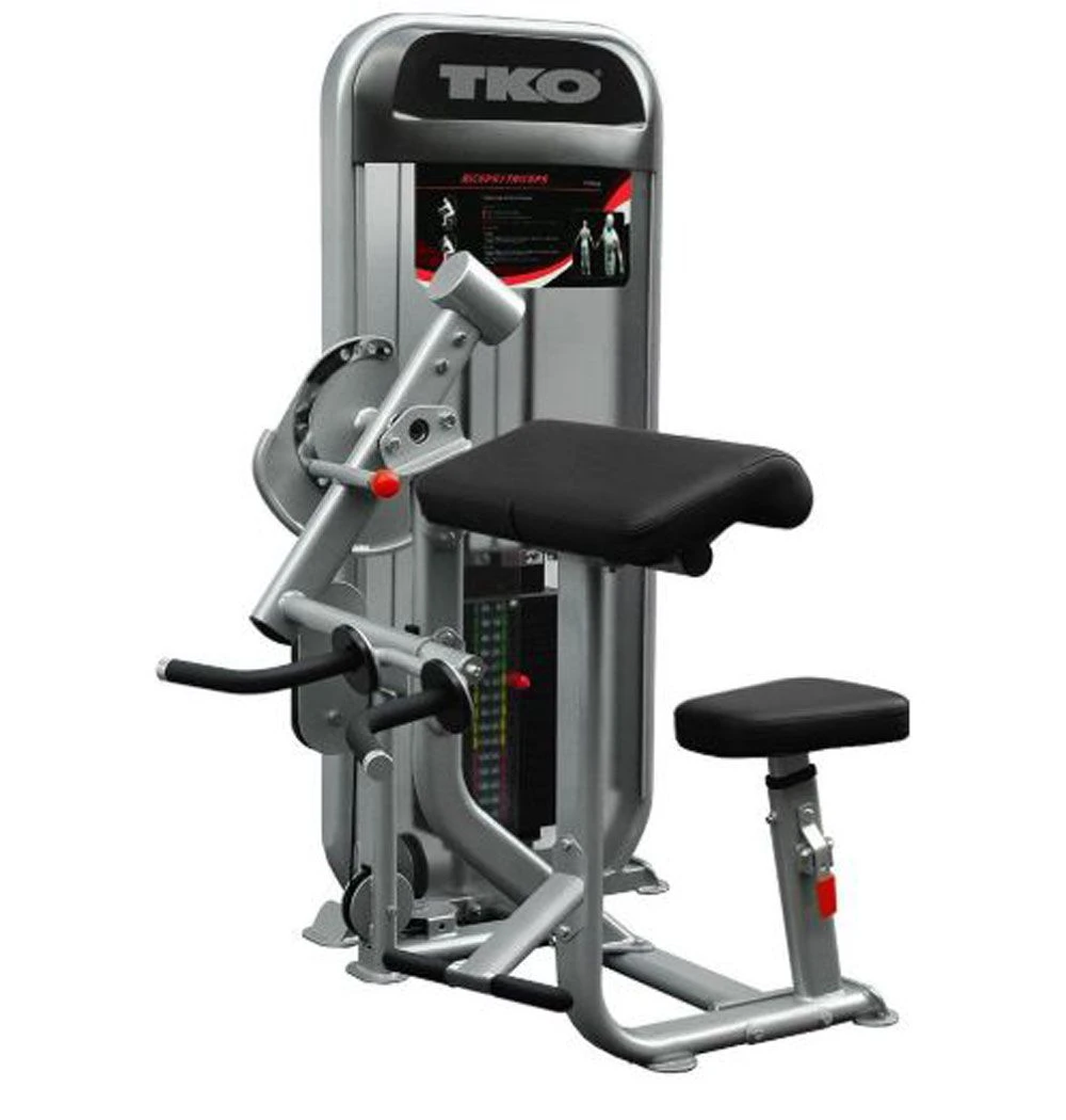 The TKO Achieve Dual Bicep Curl / Tricep Extension provides a combination of exercises in a compact space that includes: bicep curls and tricep extensions. A multi-position seat pad and multi-grips allow this machine to accommodate a wide range of users.