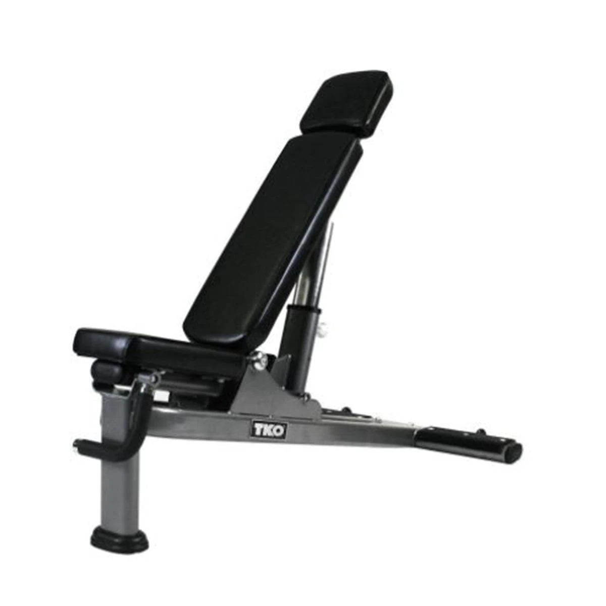 TKO’s Commercial Multi Angle Bench is ideal for vertical markets and commercial use. Constructed completely of 3 in square 11 gauge tubing, its single-piece mainframe is attractive and durable. The Easy Handle design makes for convenient mounting and dismounting, while the rear transport wheels give this machine easy mobility. Seat locks into position for incline work.