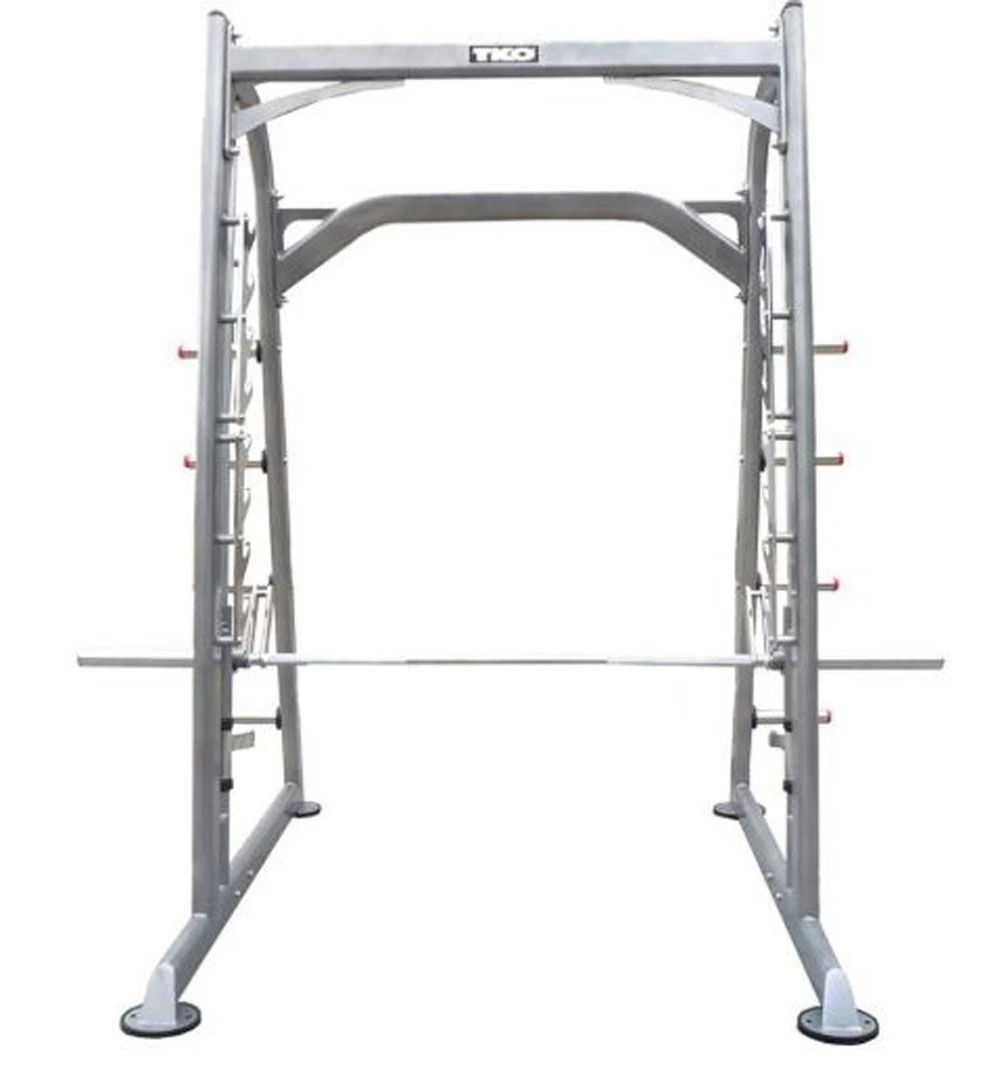 TKO”s Smith Machine features 8 height positions and a rotating bar that easily fits into the slots. The dual safety stops allow users to lift independently and enjoy a safe, secure workout. A counterweighted lifting arm reduces starting weight to 14 lbs. The Smith machine is made from heavy-duty 11 gauge tubing for maximum durability. This machine is great with any bench for intense chest and shoulder routines!
